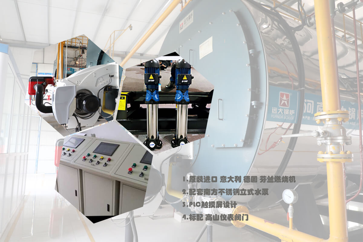 原裝進口燃燒器及閥組;高山一次性閥門儀表;南方立式不銹鋼水泵;PLC觸摸屏控制系統(tǒng);