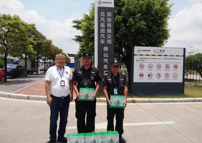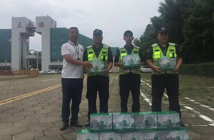 按照公司的統一部署,2019年7月1-6日,一連六天,公司領導班子成員分別到集團旗下六個保安部各分隊駐勤崗點對堅守在工作崗位上的一線隊員進行了慰問。每到一處,他們都將購置的清涼飲料、防暑藥物、風扇等防暑降溫用品親自遞到隊員手上,并親切的與隊員們進行交談,了解隊員的夏季工裝是否舒適、透氣、工作環境是否需要添置通風設施和降溫設備等。同時叮囑大家要合理安排巡邏頻率,及時補充水分,既要做好本職工作,又要注意身體和安全。