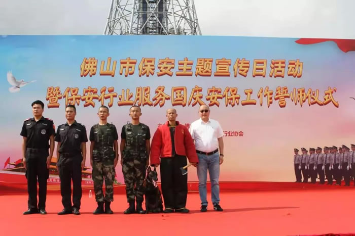 為了迎接中華人民共和國(guó)70周年華誕,號(hào)召全市保安積極行動(dòng)起來(lái),7月24日上午,佛山市保安服務(wù)行業(yè)在禪城區(qū)嶺南明珠電視塔廣場(chǎng),與全國(guó)、全省同步,舉行了隆重的聲勢(shì)浩大的“佛山市保安主題宣傳日暨保安行業(yè)服務(wù)國(guó)慶安保誓師儀式”。廣東國(guó)盾特衛(wèi)保安集團(tuán)有限公司董事長(zhǎng)夏學(xué)樹率領(lǐng)其集團(tuán)公司方隊(duì)全程參加,在技防操演中,國(guó)盾特衛(wèi)保安集團(tuán)特種犬護(hù)衛(wèi)隊(duì)威武亮相,成為全場(chǎng)亮點(diǎn),受到各方好評(píng)。