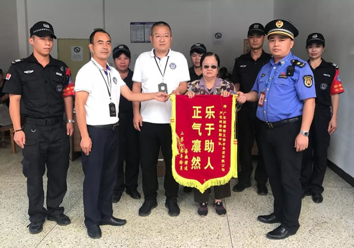 “感謝你在關鍵時刻伸出援手,讓我感覺人間有愛。”10月18日下午,國盾特衛保安一部蘆苞城管特勤中隊辦公室出現了溫情的一幕:一位六旬老人蔡姨向蘆苞城管特勤人員送上一面寫有“樂于助人,正氣凜然”字樣的錦旗,以表達心中的感激之情。集團公司管理層人員與蘆苞城管分局領導代表一起接受老人(蔡姨)贈予的錦旗,并在辦公室召開座談會。