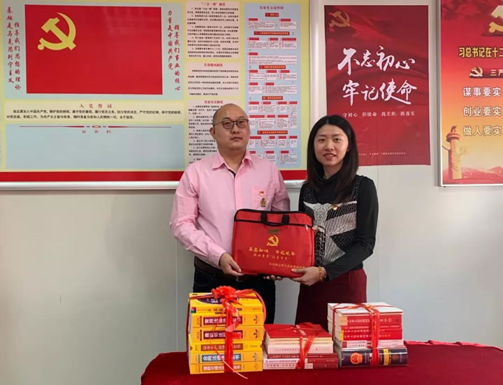我司黨支部副書記鄭紅戰代表集團公司非常感謝云東海街道組辦對我司的關心關愛,尤其是在近段開展的“不忘初心、牢記使命”主題教育期間,此次捐贈的書籍不僅涉及黨建書籍,還有法律法規、合同投標等類別。鄭紅戰表示將會把書籍放在黨建會議室供員工翻看、借閱,同時也引導員工放下手機,主動學習,讓公司同事們能在閑暇時暢游知識的海洋,極大豐富了精神文化生活。