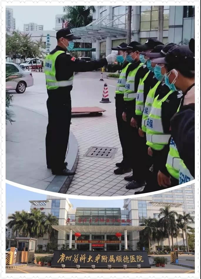 由于新冠狀病毒疫情的爆發,又恰逢春節期間,我司派駐到廣州醫科大學附屬順德醫院的保安員克服困難、緊守崗位、履職盡責,除了保證現場的良好秩序和區域安全,還支持院方完成醫療物資搬運、增設值守崗位、協助分診、警戒圍蔽等臨時性工作任務,并加班加點地配合院方客戶單位落實各項疫情防控工作部署。