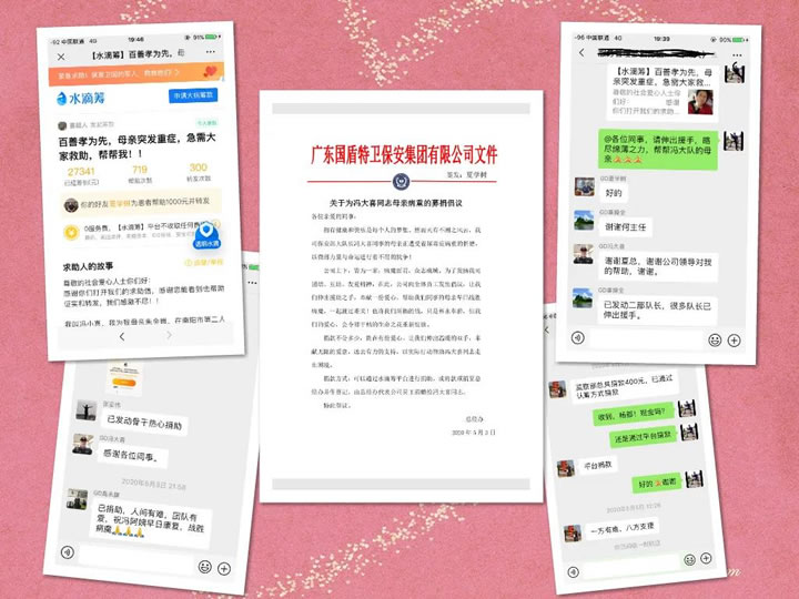 擁有健康和快樂是每個人的夢想!然而天有不測之風(fēng)云,我司保安二部大隊長馮大喜同志的母親突發(fā)尿毒癥,病情危殆。集團公司在第一時間得知此消息后,公司領(lǐng)導(dǎo)親自詢問病情,并委托總經(jīng)辦發(fā)起募捐倡議,同時組織公司全體員工舉行了“獻愛心募捐活動”,通過轉(zhuǎn)發(fā)水滴籌平臺進行線上捐助,共募得善款20000元左右。