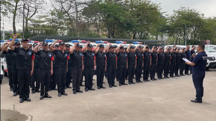 服務(wù)管理部部長高永旗率領(lǐng)60名國盾特衛(wèi)輔助執(zhí)法隊員列隊集合,并帶頭動員宣誓,用錚錚誓言表達(dá)對白坭鎮(zhèn)政府忠誠履職盡責(zé)、奮力擔(dān)當(dāng)作為,全力以赴做好城市管理輔助執(zhí)法工作的堅定決心。