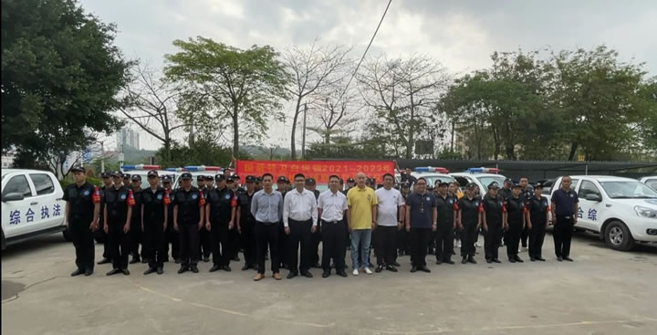 為著力打造美麗宜居的新白坭,進一步鞏固擴大農(nóng)村人居環(huán)境整治建設(shè)成果,3月19日上午,白坭鎮(zhèn)舉行新一輪綜合執(zhí)法輔助項目進駐儀式,60名國盾特衛(wèi)輔助執(zhí)法人員、6臺巡邏皮卡車、15臺巡邏電瓶車全部到位,為白坭鎮(zhèn)城市精細(xì)化管理提供強有力的支撐。白坭鎮(zhèn)黨委副書記曾延軍、黨委委員曾劍群、國盾特衛(wèi)保安集團董事長夏學(xué)樹、副總經(jīng)理王延周等一行雙方代表出席進駐儀式。
