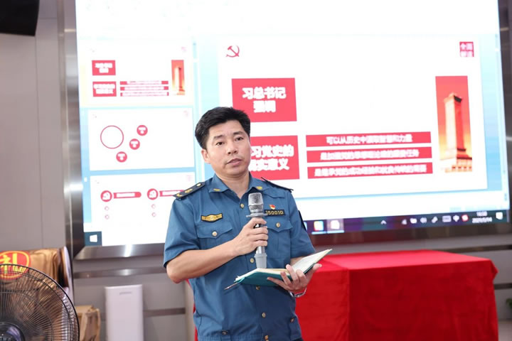 其后,湛江市交通運輸局執(zhí)法一科科長付雪松同志帶領大家一起回顧了黨的百年發(fā)展歷程,共同追憶崢嶸歲月、感悟初心使命,引導黨員切實增強責任擔當,做到知史愛黨、知史愛國,黨中央有號召、共產黨員有行動。付雪松同志講述到:近代以來,在中國和世界舞臺上政黨繁多,難以數(shù)計,但是像中國共產黨這樣,成立百年,引領中華民族站起來、富起來、強起來。付雪松科長結合視頻、圖片等資料分別從新民主主義革命時期、社會主義革命和社會主義建設時期、改革開放和社會主義現(xiàn)代化建設時期系統(tǒng)回顧了革命戰(zhàn)爭年代的艱苦創(chuàng)業(yè)史和新中國發(fā)展壯大的光輝歷程,學習我們黨和國家的基本歷史經驗。付雪松科長強調,2020年突如其來的新冠疫情,是對國家治理體系和治理能力現(xiàn)代化一次大考,在以習近平同志為核心的黨中央堅強領導下,常態(tài)化疫情防控和經濟社會發(fā)展“雙統(tǒng)籌”穩(wěn)步走向“雙勝利”,彰顯“中國之治”生動實踐和顯著優(yōu)勢。