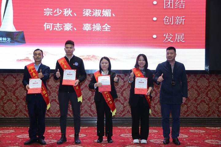 表彰大會結(jié)束后,集團(tuán)公司黨支部副書記、董事長助理鄭紅戰(zhàn)率領(lǐng)各職能部門負(fù)責(zé)人齊唱《團(tuán)結(jié)就是力量》,拉開2024年迎新聯(lián)歡晚會的序幕,一首《國盾特衛(wèi)之歌》唱出屬于我們國盾特衛(wèi)人的精神風(fēng)采,幸運(yùn)大抽獎更是將現(xiàn)場活動氣氛不斷推向高潮,贏得與會人員陣陣掌聲喝彩。