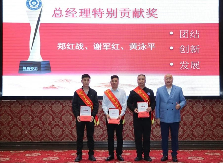 集團(tuán)公司黨支部書記、董事長夏學(xué)樹發(fā)表總結(jié)講話,首先肯定了2023年全體國盾特衛(wèi)人取得的顯著成績,并向奮戰(zhàn)在一線的員工致以崇高敬意和衷心感謝,向受到表彰的集體和個人表示熱烈的祝賀。然后,從當(dāng)前經(jīng)濟(jì)發(fā)展形勢、行業(yè)形勢、市場結(jié)構(gòu)等多方面,客觀分析目前集團(tuán)公司在發(fā)展中存在問題以及遇到的瓶頸。他強(qiáng)調(diào),圍繞“穩(wěn)增長”發(fā)展主線,聚焦“市場拓展、信息化建設(shè)、績效激勵、人才引培”等四大重點(diǎn),在新的一年,要求全體國盾特衛(wèi)人積極把握時代機(jī)遇的同時,充分發(fā)揮自身優(yōu)勢和效應(yīng),以鞏固現(xiàn)有資源為基礎(chǔ),加快實(shí)施創(chuàng)新驅(qū)動,促進(jìn)動能轉(zhuǎn)換;以市場需求為導(dǎo)向,積極拓展保安市場新業(yè)態(tài);以品質(zhì)服務(wù)為主線,深挖綜合安保的利潤增長極;著力練好企業(yè)內(nèi)功,深化“提質(zhì)、增效、降本”,緊貼市場趨勢,化挑戰(zhàn)為機(jī)遇,奮力開創(chuàng)高質(zhì)量發(fā)展新局面。