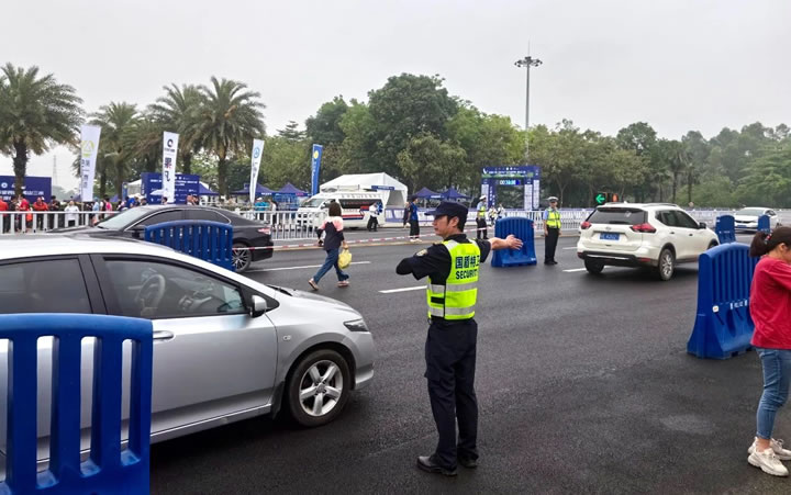 5月4日凌晨4時,我司240名安保人員已準(zhǔn)時到達現(xiàn)場集結(jié),著裝整齊、精神抖擻,按照安保工作預(yù)案提前到達各區(qū)域指定點位,對安保崗位的設(shè)置再次熟悉并進行對接,確保賽場沿途秩序,保障參賽選手和觀賽群眾安全,并根據(jù)現(xiàn)場情況及時調(diào)整安保措施。由于賽事活動涉及范圍較廣,保安員各司其職、各盡其責(zé)做好賽事前的清障工作,在主賽區(qū)協(xié)助技術(shù)官對參賽者以及觀賽群眾進行疏導(dǎo)分流;在卡點及路口維持秩序,協(xié)助公安機關(guān)做好分流引導(dǎo)、交通管制等各項任務(wù),確保整場賽事活動安全有序。
